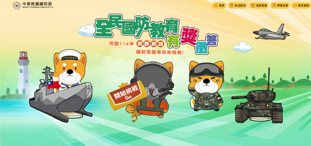 全民國防教育有獎徵答活動網頁