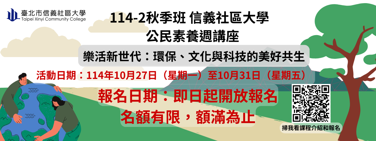 【公民週】快訊~114-2期秋季班公民素養講座~開放校內外報名!